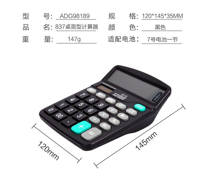 晨光文具837太陽能計(jì)算器商務(wù)型辦公用會(huì)計(jì)專用科學(xué)商用學(xué)生考試大屏大按鍵計(jì)算機(jī)大號小號便攜雙電源