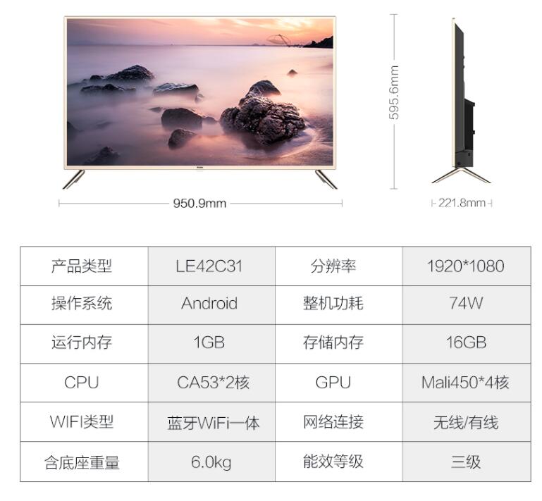 Haier/海爾 LE42C31 42英寸高清智能語(yǔ)音1+16G網(wǎng)絡(luò)平板電視機(jī)