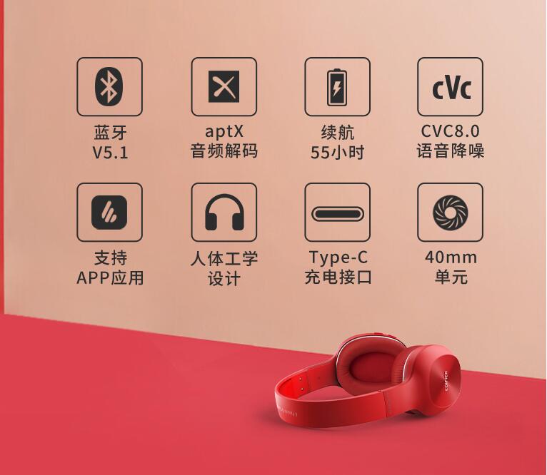 EDIFIER/漫步者 W800BT plus無線藍(lán)牙耳機(jī)運(yùn)動(dòng)音樂通話頭戴式耳機(jī)